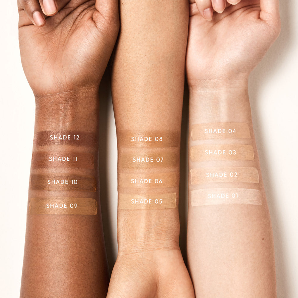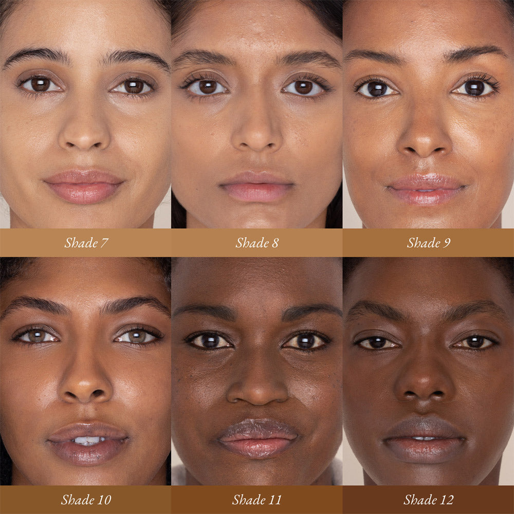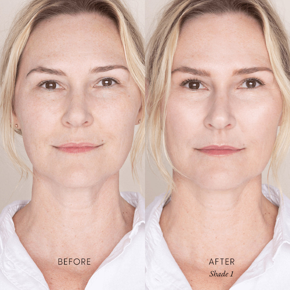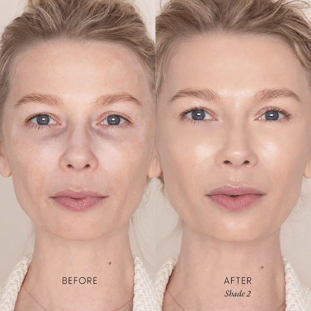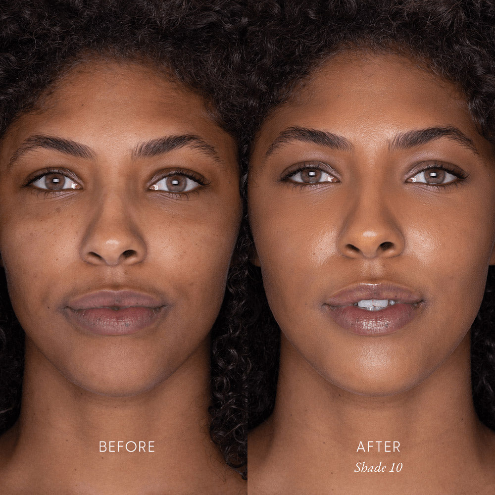 This formula is perfect for people who don't like foundation. It starts as serum-strength skincare (to boost collagen and brighten & hydrate skin), goes on like a moisturizer, and melts into your skin for a dewy (never greasy) look with light to medium buildable coverage and sun protection. Clean, vegan, and cruelty-free.