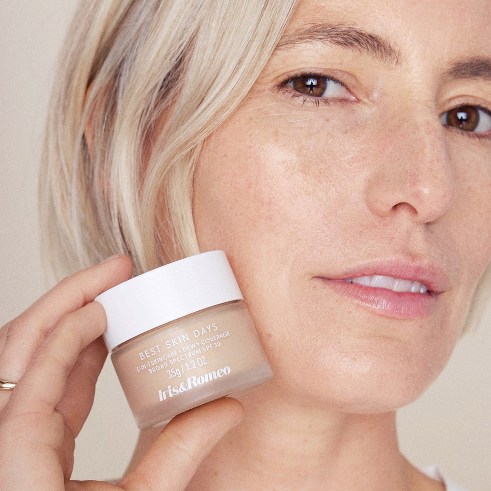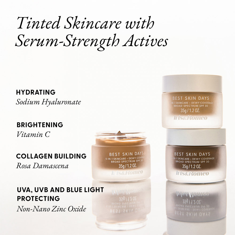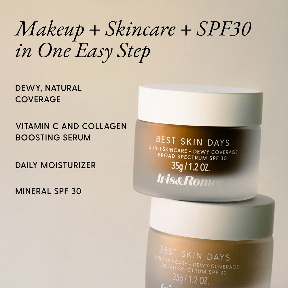 Best Skin Days™ SPF 30 is a clean makeup + skincare + SPF 30 tinted moisturizer that gives natural coverage, a glowy, hydrated finish, and protection against UVA/UVB and blue light.