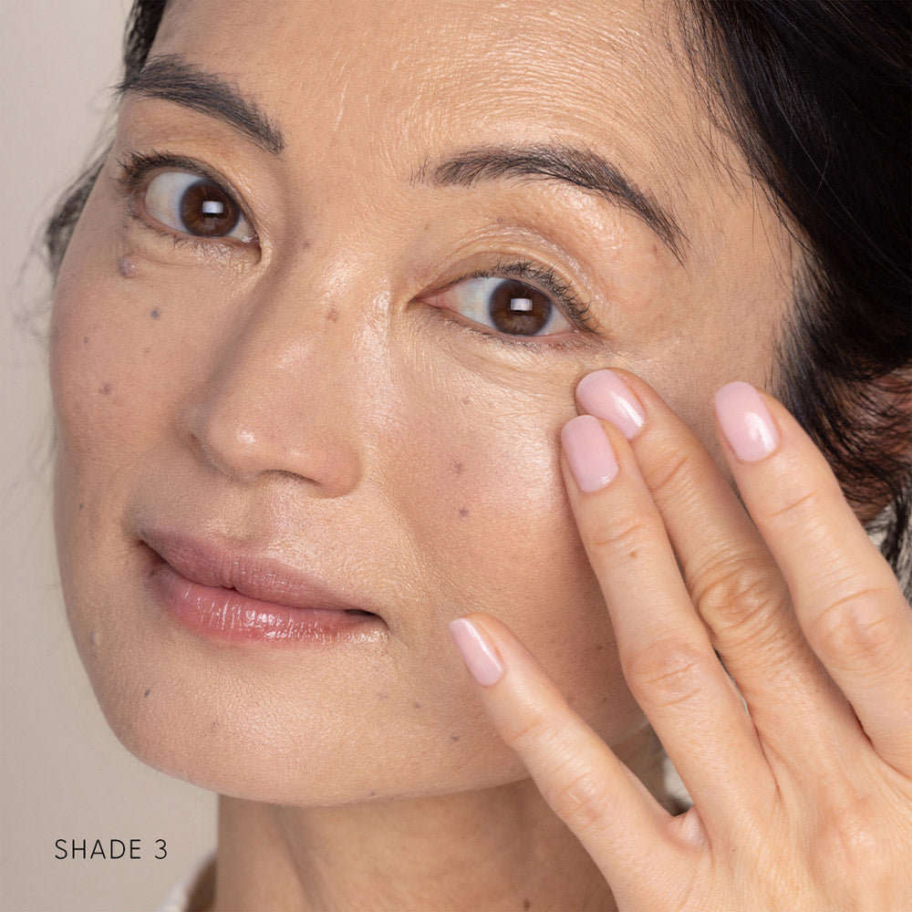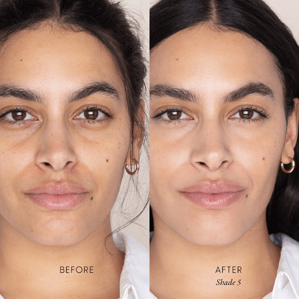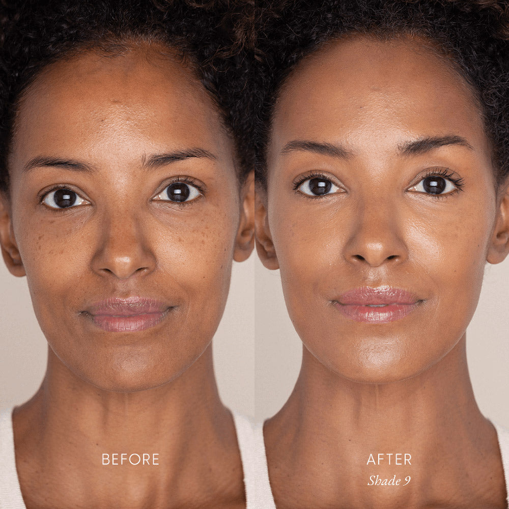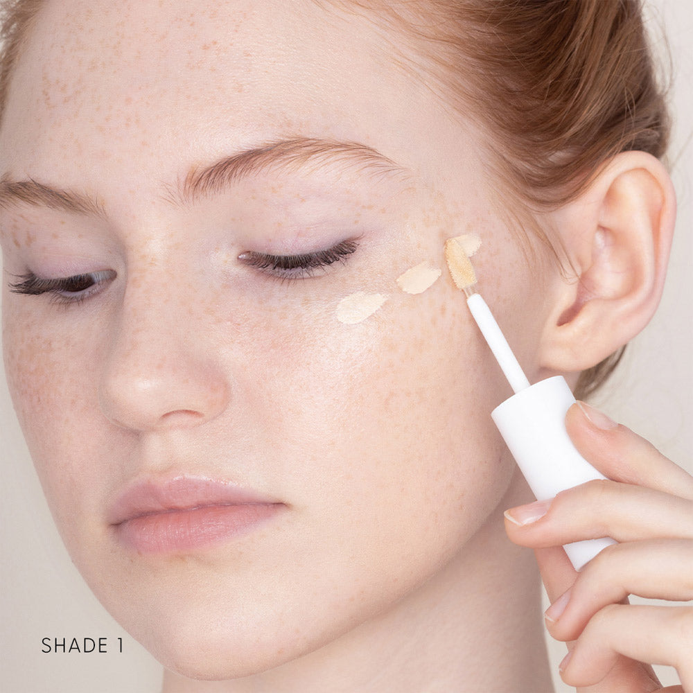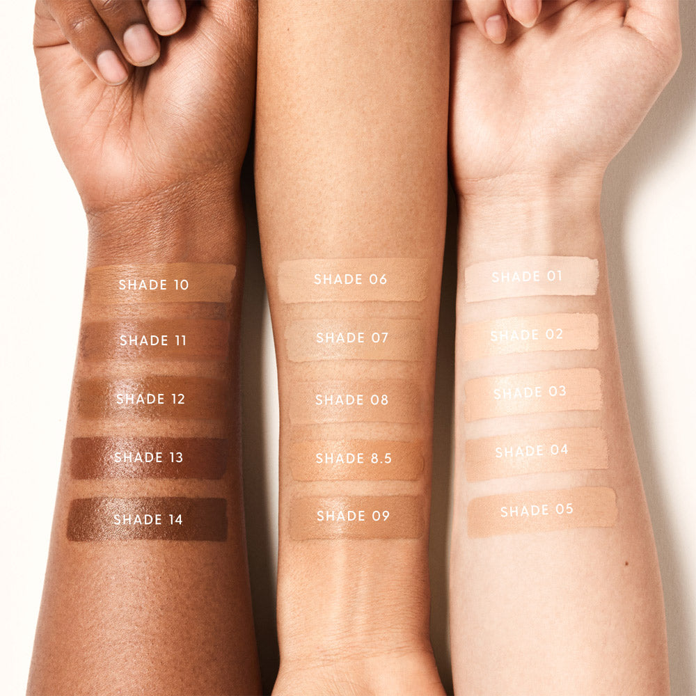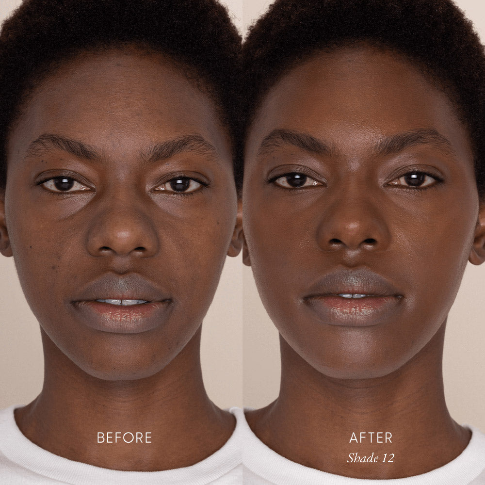 Our concealer and foundation shades are a 1:1 match—try a shade lighter or deeper, depending on personal preference.